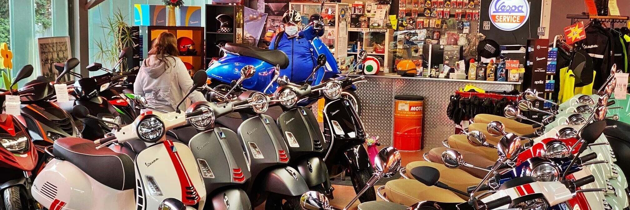 Willkommen beim größten freien Händler für Vespa / Piaggio / Aprilia und Vertragshändler von Kymco in Leverkusen. 400 qm Ladenlokal / Werkstatt / Zubehör